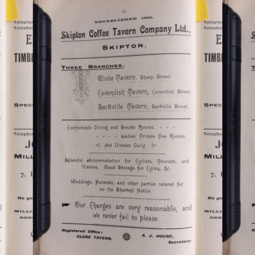1881 the Globe Coffee Tavern was opened in the former warehouse, ie no.2 Sheep Street; still there in 1893 [O.S.map] and by 1936 it was the ‘Skipton Café’.